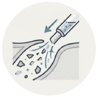 - 機制:微創修復是透過特殊器械,從極小的針孔進入,將難以溶解或無法被身體代謝的固態硬塊溫和且精準地處理並取出。