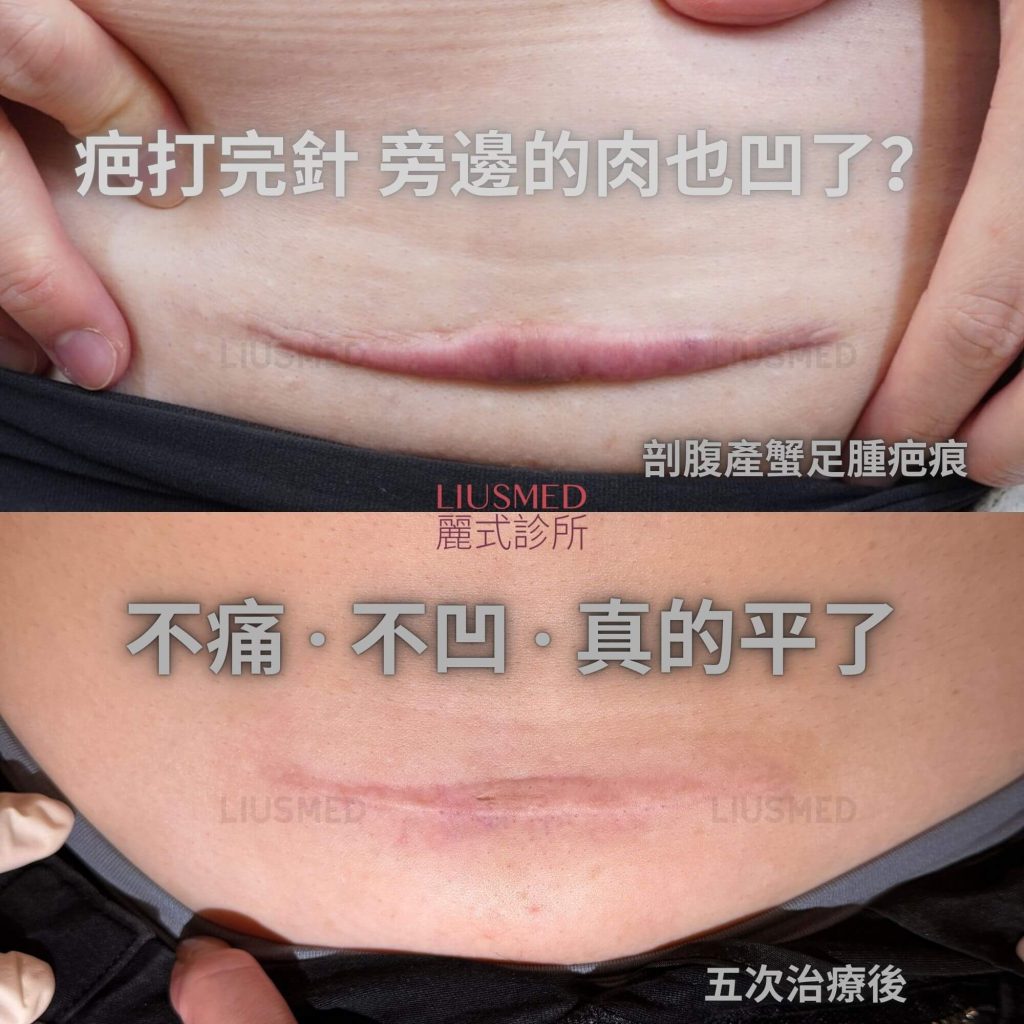 1. 類固醇注射:低劑量類固醇如Triamcinolone,可以直接注射入疤痕組織中,以減少疤痕的厚度和紅腫。但這種治療通常需要多次進行,但通常適合用在小範圍的傷口,因為大量注射類固醇反而會產生不必要的風險。另外要注意,有些患者可能出現起水泡、色素沈積,或者是皮膚萎縮、或者是反而變成凹疤的風險。因此施打的劑量跟方式,醫師要很仔細拿捏,也要做好醫病溝通。