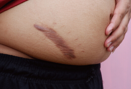 蟹足腫通常不會造成嚴重疼痛,但其外觀上的特徵,如在胸部、手臂或四肢上的明顯凸起,往往給患者帶來心理上的壓力。