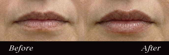 案例E(45歲):唇紋明顯,天生唇型薄,尤其上唇 唇緣不明顯,且嘴角下垂,進行整體唇緣重建, 打造對稱適合男性的自然唇形曲線。