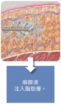 1. 麻醉準備:將專業麻醉液注入欲雕塑的脂肪層。