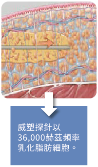 2. 音波乳化:放入威塑探針,利用 36,000Hz 音波乳化脂肪組織。