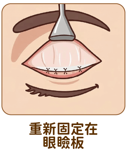 - 拉提效果穩定且持久:透過將肌腱確實縫合固定於眼瞼板,拉提的力量更為穩固,大幅降低術後復發或變淺的機率,術後維持的穩定度表現極佳。