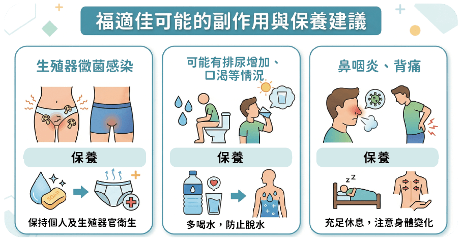 - 生殖器黴菌感染:因為糖分從泌尿道排出,容易滋生細菌或黴菌,可能增加(女生念珠菌陰道炎、男生龜頭包皮炎)和泌尿道感染的風險。保持良好衛生習慣很重要!